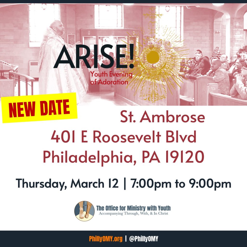 - Arise! Youth Evening of Adoration is open to teens in 8th through 12th grade.