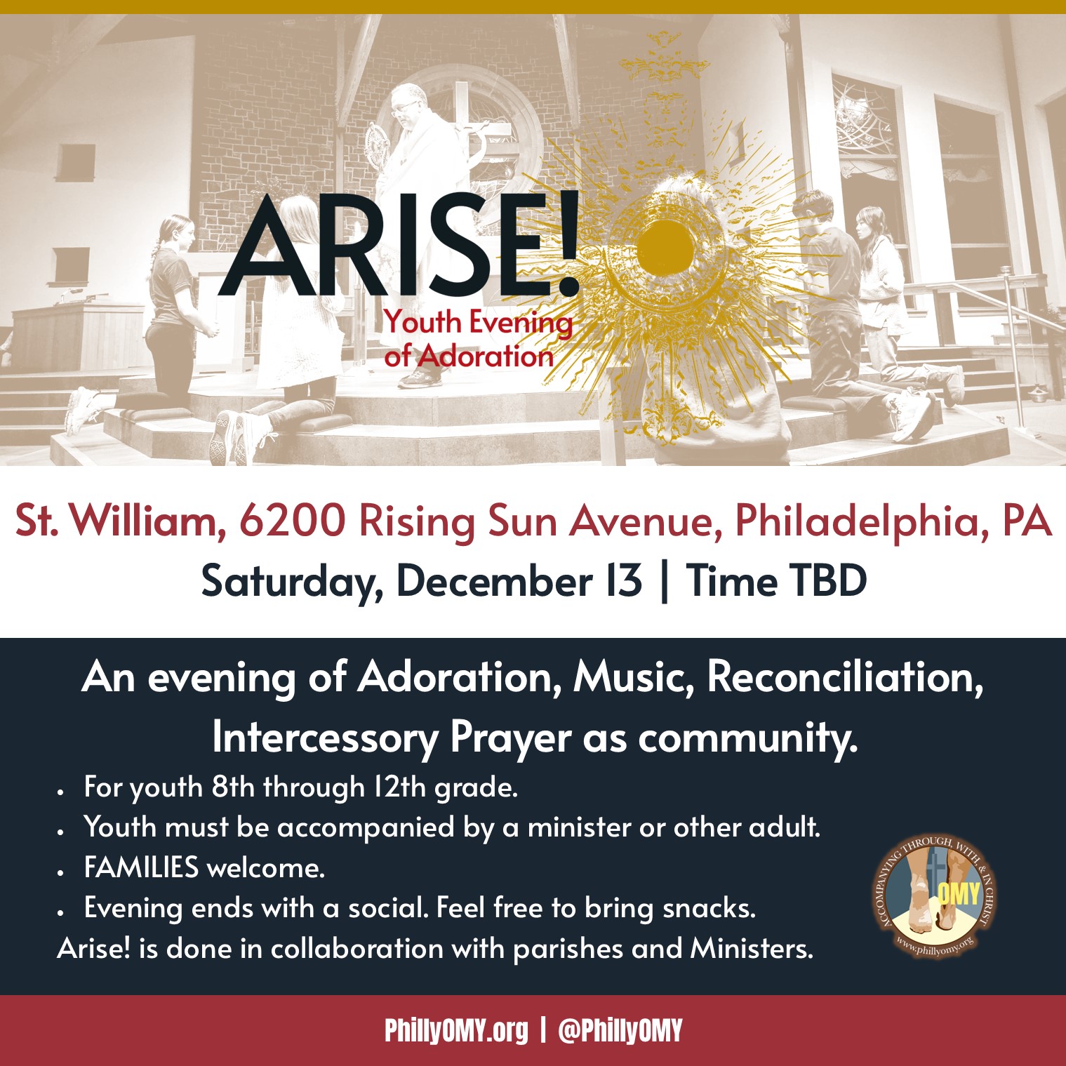 - Arise! Youth Evening of Adoration is open to teens in 8th through 12th grade.