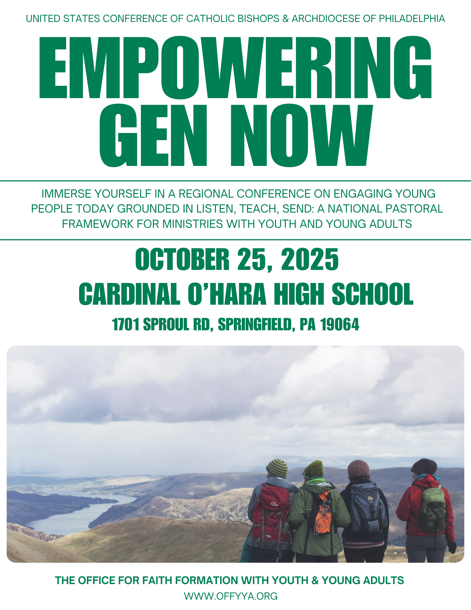 - Listen, Teach, Send: A National Pastoral Framework for Ministries with Youth and Young Adults, click here: ENGLISH | SPANISH