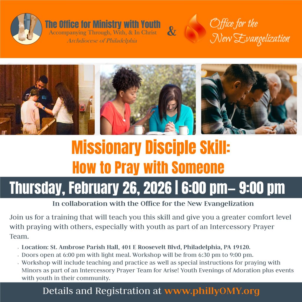 The Office for Ministry with Youth and the Office for the New Evangelization invites you to learn an important Missionary Disciple skill: How to Pray with Someone.
